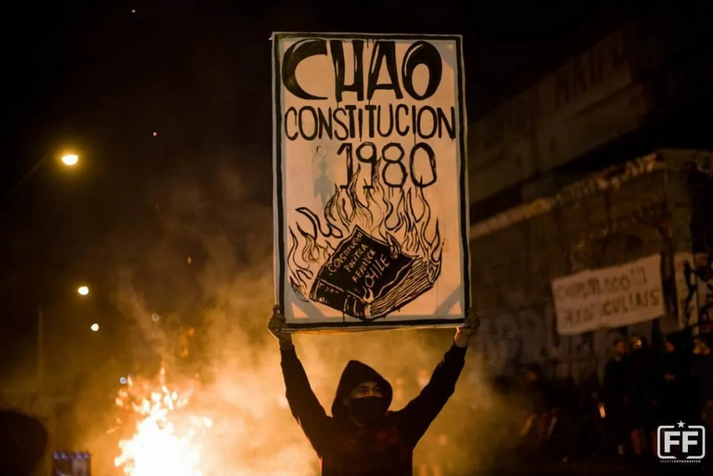 El cambio constitucional fue un mecanismo de captura del movimiento de revuelta. La contrainsurgencia encontró en la vieja consigna de la izquierda institucional desde los 90s de una Asamblea Constituyente un método eficaz por el cual trasladar la lucha a su tablero de juego: la democracia. A su vez sirvió de un filtro por el cual separar al movimiento de revuelta, entre los extremistas y los mesurados, entre quiénes apoyaban la lucha por una nueva constitución y quiénes la rechazaban. La enfermedad del asambleísmo estaba presente ya en con los pingüinos en el 2006, para noviembre del 2019 los principales partidos de la izquierda desempolvaron sus consignas a favor del cambio de constitución. La aspiración irreal hacia las posibilidades de transformación del orden social capitalista por medio de la democracia ocultaba sin embargo, la ansía por ser parte de su gestión.